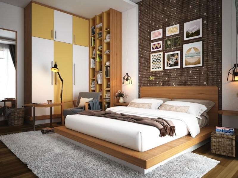 Nội thất tối giản nhưng tiện nghi – giường, tủ, bàn trang điểm… nên đồng bộ về chất liệu và tone màu.