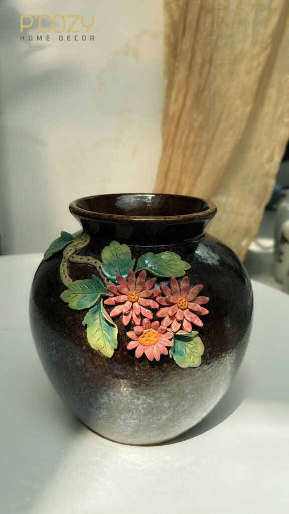 Một chiếc bình gốm nhỏ cũng đủ tạo nên điểm nhấn đậm chất Á Đông cho góc phòng khách, bàn trà hay một góc làm việc yên bình.