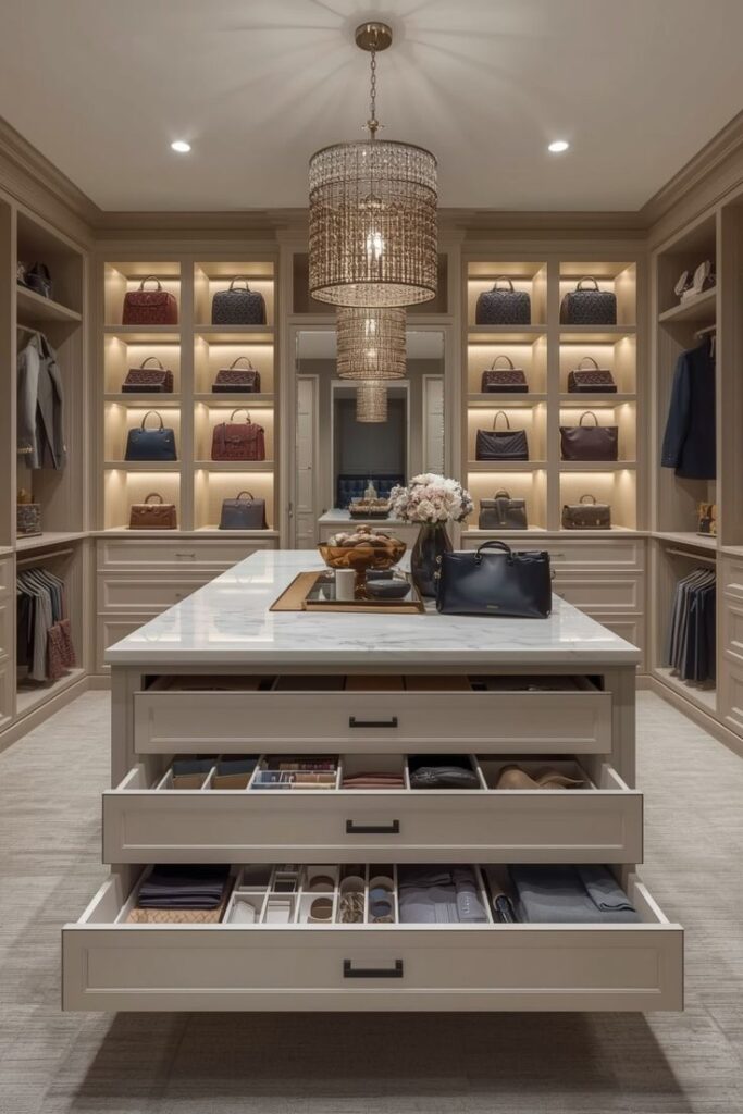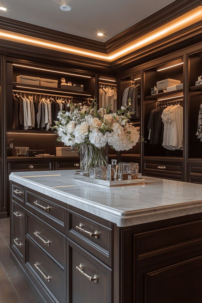 Không chỉ đẹp về mặt thẩm mỹ, căn phòng còn mang đến trải nghiệm sống đẳng cấp. Từng chi tiết nhỏ như đảo tủ trung tâm, ghế ngồi hay thảm trải sàn đều góp phần tạo nên một không gian lý tưởng – nơi bạn có thể tận hưởng sự thư giãn và cân bằng trong cuộc sống.