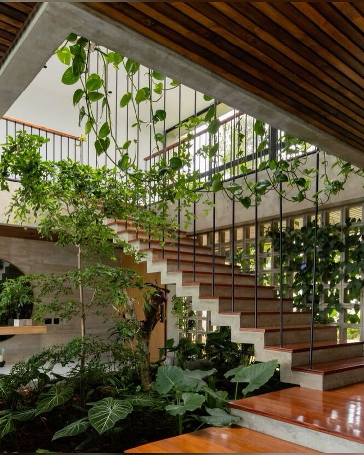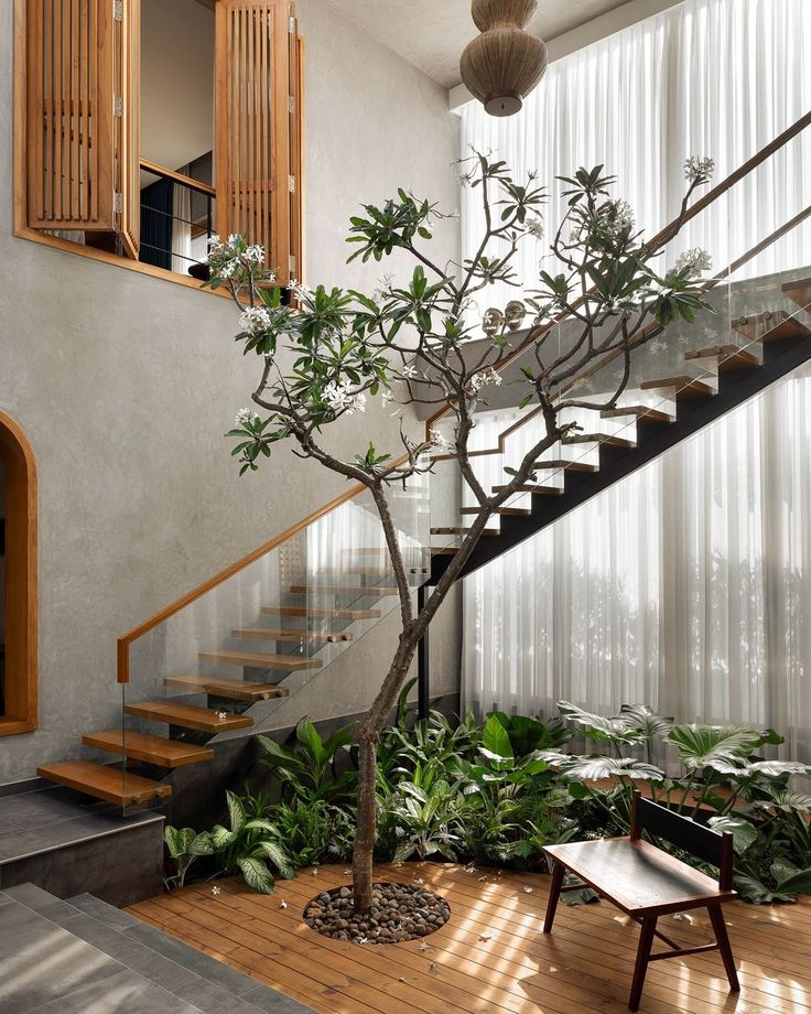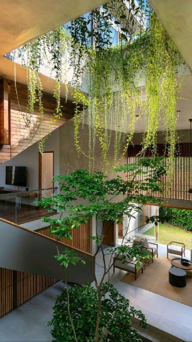 🪴 Chất liệu tự nhiên như gỗ, đá, vải lanh cùng sắc xanh của cây cối giúp cân bằng năng lượng, mang lại cảm giác thư thái và gần gũi.