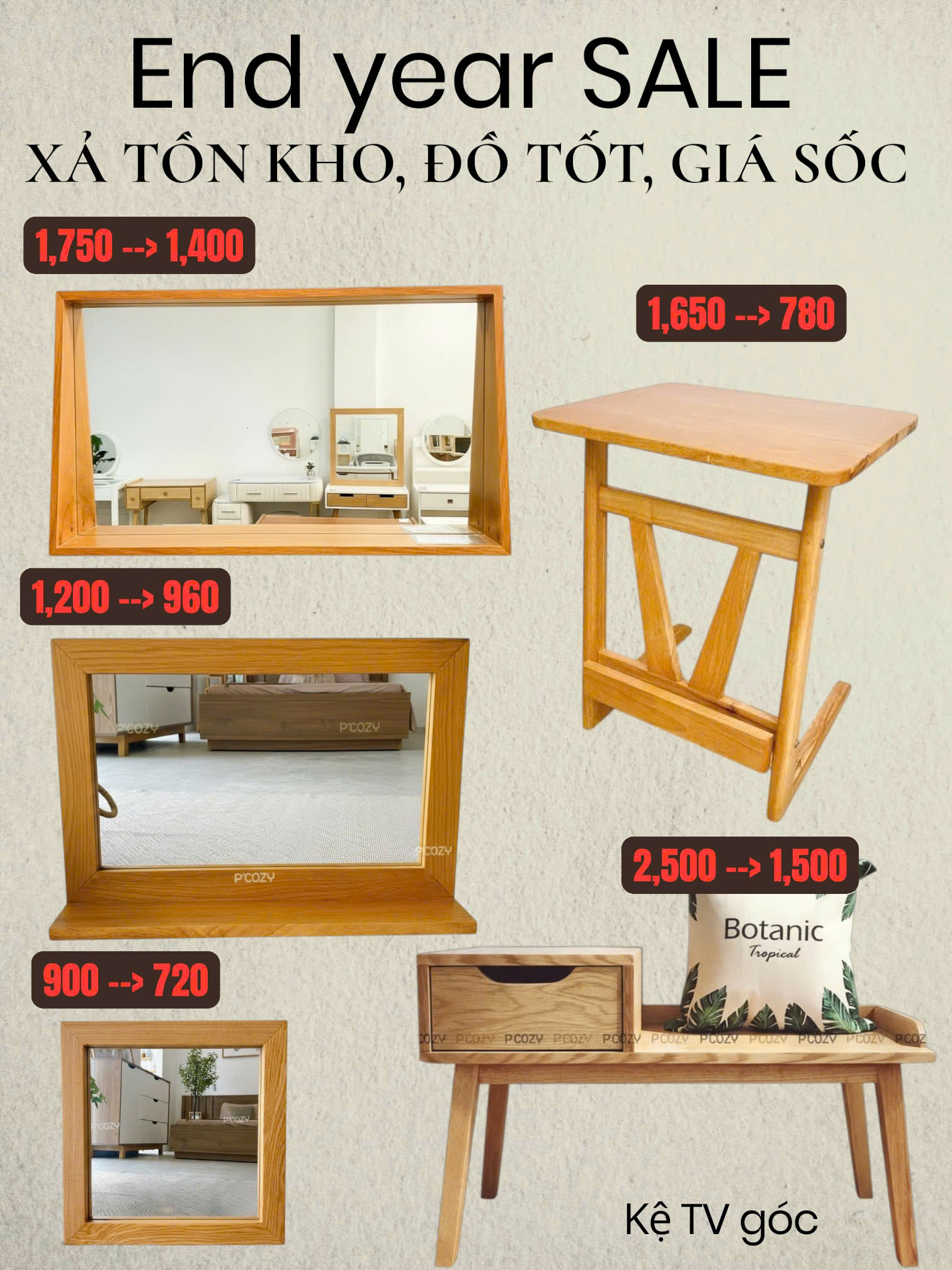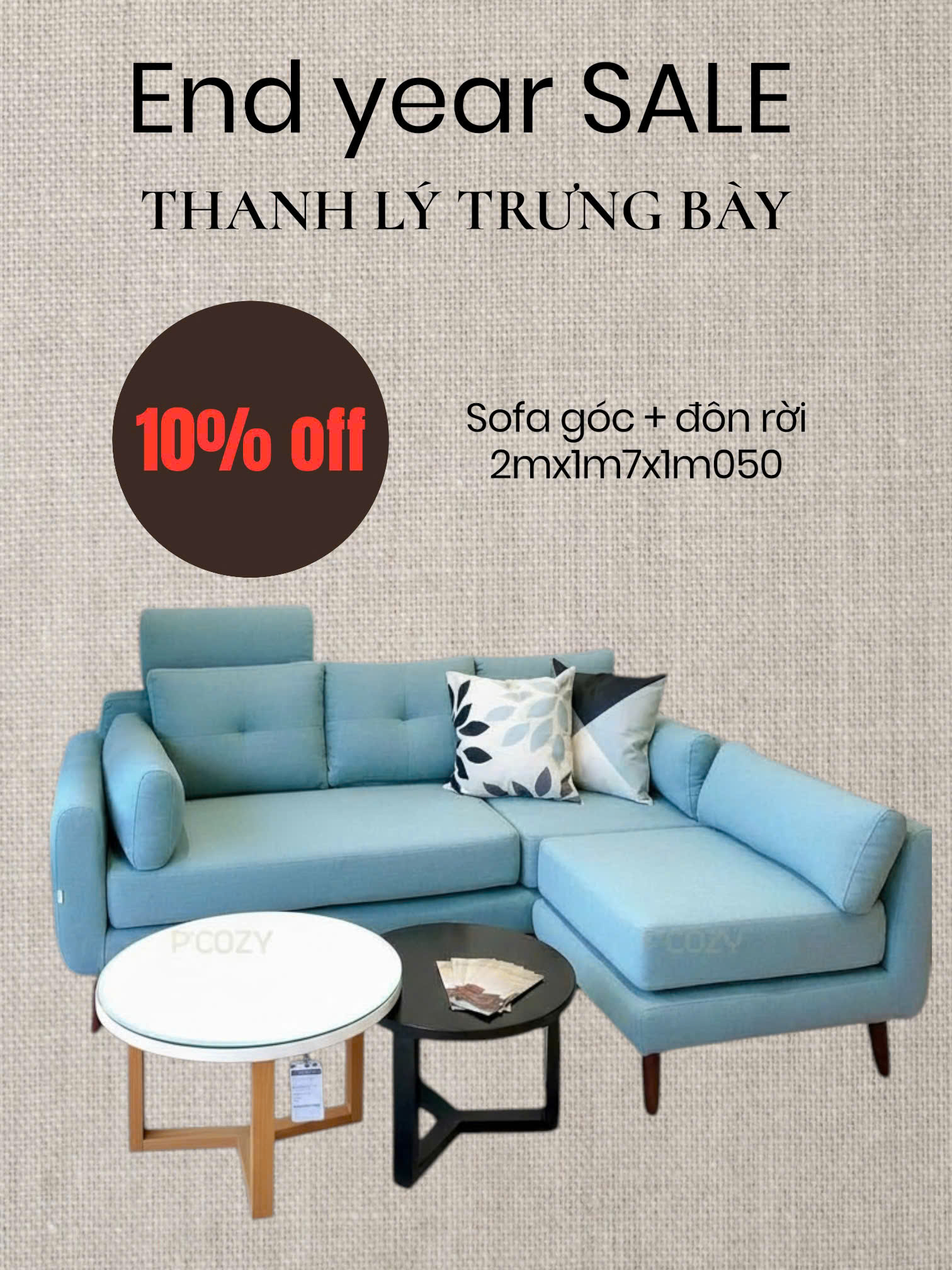 Cuối năm là thời điểm lý tưởng để làm mới tổ ấm, chuẩn bị cho một năm mới trọn vẹn và ấm áp hơn. Pcozy mang đến chương trình SALE CUỐI NĂM với hàng loạt ưu đãi hấp dẫn dành cho các sản phẩm nội thất & decor được yêu thích nhất.