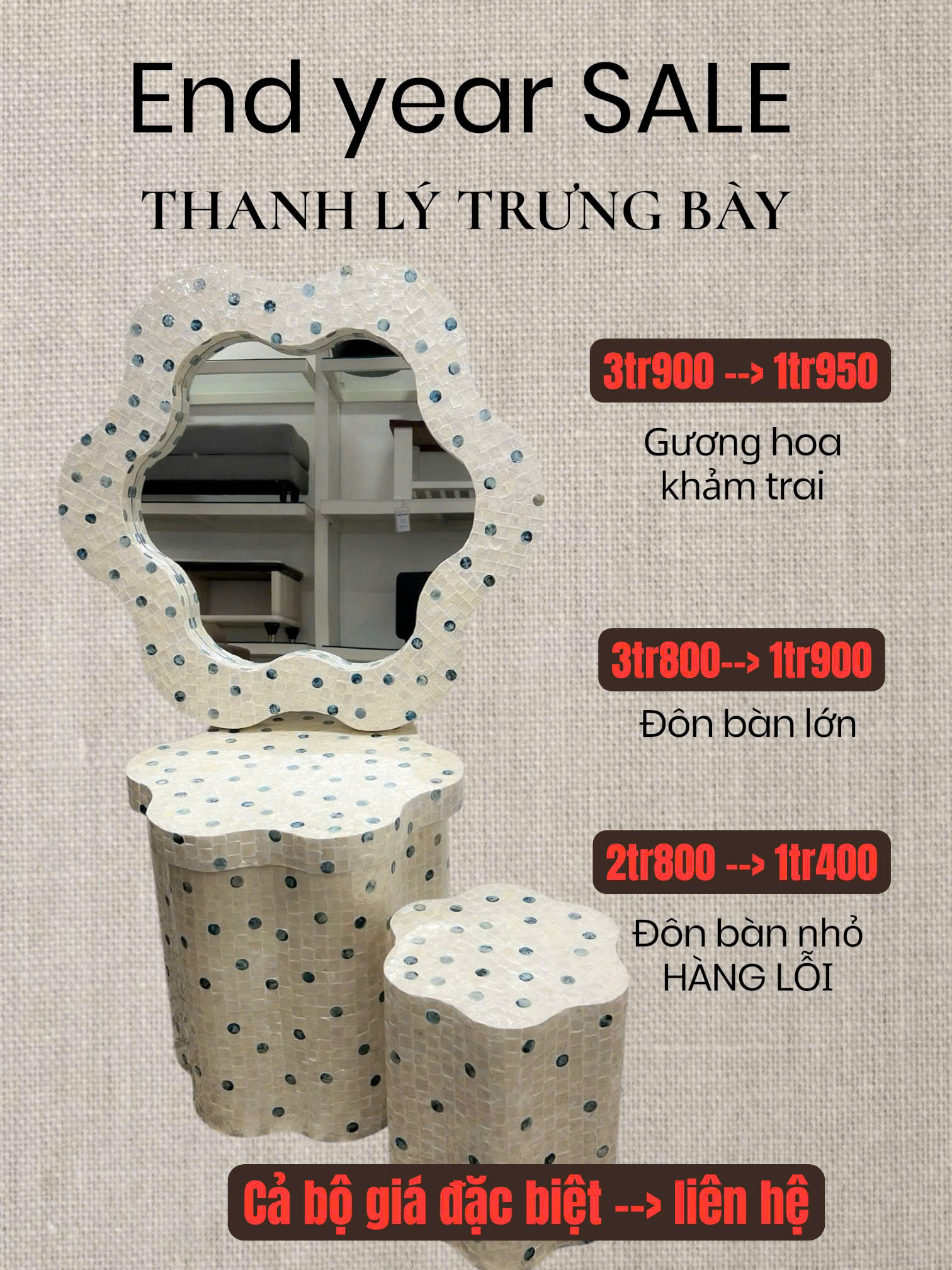 Đây là cơ hội tuyệt vời để bạn đầu tư nội thất mới với chi phí hợp lý, sẵn sàng đón Tết trong một không gian chỉn chu và đầy cảm hứng.