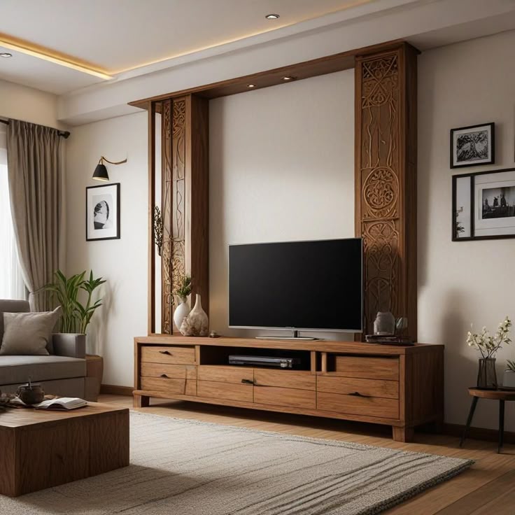 • Nhà phố: Tủ tivi kết hợp vách ốp gỗ hoặc lam trang trí